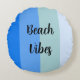 Legal padrão azul e verde claro de listras e um texto personalizável dizendo: "Vibes de praia". Ajustado um estilo marinho alegre.