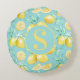 Almofada Redonda Padrão de limão amarelo-acastanhado no monograma a