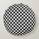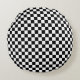 Este travesseiro redondo apresenta um padrão de tabuleiro eterno que lembra o século médio-20. Ele faria um excelente adicional para festas retrorreflectoras, salas de jogos e salas de exibição de carros retrorreflectores.