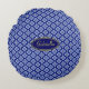 Travesseiro redondo com padrão de flores pequenas sobre fundo azul escuro