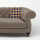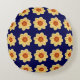 Destaque sua casa com este travesseiro decorativo redondo que mostra a foto de uma flor amarela Dahlia em um fundo azul marinho e impressa em um padrão repetitivo. Um design floral divertido! Selecione o estilo do tecido do travesseiro.