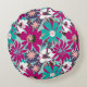 Almofada Redonda Padrão Floral Azul e Roxo