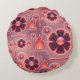 Almofada Redonda Padrão floral de arte deco vegetativo geométrico f