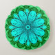 Travesseiro redondo num padrão geométrico de margarida em turquesa e verde escura e esmeralda claro