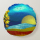 Um belo design de paisagem abstrato com um céu único que se assemelha a ondulações em líquido e uma lua, montanhas e uma árvore ouro.