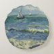 A Paisagem Marítima em Saintes Maries de la Mer de Vincent van Gogh é uma pintura náutica pós-impressionista de arte fina vintage que apresenta veleiros no oceano com ondas suaves.