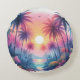 Almofada Redonda Palmeiras Praia Tropical Pôr do Sol Rosa