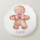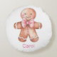 O que é mais fofo do que uma pessoa de pão de gengibre rosa? Não muito, é nossa opinião. Este doce, sorridente pequeno gengibre, esportes um arco rosa fofo para o Natal. É de um design de cor d'água. Adicionamos um nome de exemplo, para que você possa digitar uma de sua escolha para personalizar este travesseiro decorativo redondo de feriado.