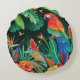 Almofada Redonda Papagaio Tropical: Fundo Floral Exótico.
