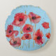 Almofada Redonda Papoula Vermelha em Papoulas de Aquarela Azul Deco