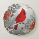 Wintery Red Cardinal Bird Round Travesseiro. Assuma a atração da estação com a presença vibrante de um cardeal vermelho, acrescentando um toque da beleza da natureza ao seu espaço num charmoso travesseiro redondo.