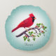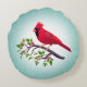 Almofada Redonda Pássaro Cardinal Vermelho no Teal