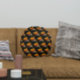 Destaque a sua casa com este travesseiro decorativo redondo que mostra a foto de um florescimento laranja da ave tropical do Paraíso, impressa em um padrão repetitivo em um fundo preto. Também chamada de Flor de Crane. Um design floral adorável! Selecione o estilo do tecido do travesseiro.