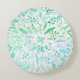 Almofada Redonda Penas e Ferns em tons azuis e tons verdes