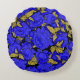 Almofada Redonda Pêonias Azuis com Folhas Douradas