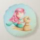 Almofada Redonda Pequena sereia bonita brincando com areia