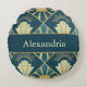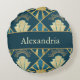Almofada Redonda Personalized Art Deco Teal & Gold Geometric Name
