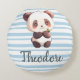 Bring a touch of cozy charm to your child's room with this personalized panda pillow. Featuring a sweet chibi-style panda, this design uses a clean background of soft blue and white horizontal stripes that perfectly complements modern nursery and bedroom decor.