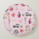 Almofada Redonda Personalized Pink Coquette Retro Cute Teddy Bear