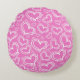 ALMOFADA REDONDA PINCO BRILHO COM CORAÇÕES BRANCAS E FLORES