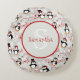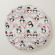 Almofada Redonda Pinguins de Natal Fofos Monograma Personalizado