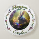 Um pintinho de bebê adorável se senta em uma cesta de ovo de Páscoa na frente. As costas têm um coelho da Páscoa.