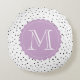 Almofada Redonda Pontos de Confetti Pretos e Brancos Monograma Lila
