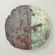 Travesseiro redondo estilo Vintage com uma foto de uma porta pintada antiga em tons verdes e castanhos. Um presente de excelente para aqueles que querem encontrar beleza na vida cotidiana, adoram o grunge, o estilo industrial ou steampunk.