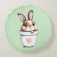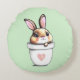 Pote de coelho bonito com coração sobre fundo de verde limão de luz. Os coelhos simbolizam longevidade, abundância e boa fortuna.