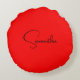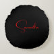 Almofada Redonda Preto Vermelho Seu Nome Caligrafia Moderna Minimal