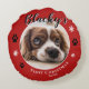 Nome do Cachorro Russo de Natal e Travesseiro Vermelho de Foto. O fundo é vermelho com flocos de neve brancos e estampas de pata preta. Personalize o travesseiro com a foto, o nome e o ano de nascimento do seu cachorro - insira a sua foto favorita do filhote. Você pode usar este travesseiro personalizado para qualquer animal de estimação. Uma adorável guarda de férias para um dono de cachorro.