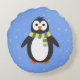 Almofada Redonda Primeiro pinguins de natal, seu texto azul de dois