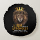 Este travesseiro redondo apresenta uma dupla impressão com negrito com letras amarelas e brancas exibindo a escritura versa bíblia "Proverbs 30:30" e citando a face de um leão vestindo a coroa de um rei acima no tema baseado na fé. Este travesseiro é feito com tecido de alta qualidade nossos travesseiros são macios e sem rugas, o cobrir é lavável por máquina.