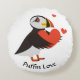 Puffin Love Red Hearts Travesseiro decorativo com texto personalizável.