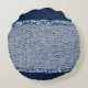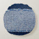 Almofada Redonda Quadro de jeans azuis com borda denim.
