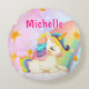 Crie uma atmosfera caprichosa e mágica no quarto da sua filha ou berçário com nosso Travesseiro Redondo Fofinho. Este travesseiro de bebê fofo apresenta um unicórnio arco-íris pastel inspirado em aquarela fantasia sentado em uma nuvem, cercado por estrelas cintilantes. Pode até ser personalizado com o nome da criança, adicionando um toque especial de singularidade.