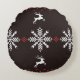 Prepare-se para as férias com este travesseiro decorativo redondo encantador! Apresentando um padrão clássico de Fair Isle ou suéter de Natal, a design apresenta filas de renas saltitantes e grandes flocos de neve numa combinação clara e festiva de carvão negro/preto, branco nítido e vermelho em negrito.