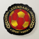 This soccer-inspired design features a high-contrast red, black, and gold color palette that gives it a bold, eye-catching presence. The rich tones and clean layout create a strong visual identity that stands out in any fan space. The design can be personalized with custom text, making it a meaningful choice for soccer lovers. Applied to a round pillow, it works well as a decorative accent and makes a great gift for occasions like soccer birthdays, Father’s Day, or back-to-school room updates.