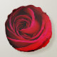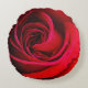 Round throw pillow with printed red rose. Romantic decor for Valentine's Day.