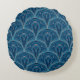 Repeating geometric Art Deco pattern with teal lines and orange dots on a dark blue background, creating a symmetrical and elegant design.