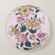 Almofada Redonda Retro Botanical Custom Name Pink Cream Beige