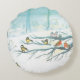 Almofada Redonda Robins vermelhos e aves-vivas na floresta de inver