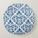 Almofada Redonda Rolar Damasco 2Way Lg Ptn Dk Azul em Branco