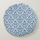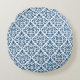 Almofada Redonda Rolar o Damask Ptn Dk Azul em Branco