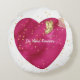 Almofada Redonda Romantic Pink Watercolor Heart & Gold Butterfly