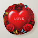 Almofada Redonda Romantic Red Heart Framed by Roses and Butterflies
