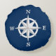 Travesseiro em um design rosa de bússola de 8 pontos com um efeito 3d ligeiramente alto - branco sobre um fundo marinho / azul índigo