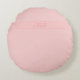 Um travesseiro decorativo redondo em rosa dourado / rosa quartzo com iniciais modeladas que você personaliza em uma banda rosa ligeiramente mais profunda. código design: trrsgldmngrm