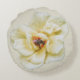 Uma abelha de bombardeio está no centro desse rosa de cor amarelo-claro cremoso coletando o pólen. Copyright © 2017 Kimberly J Tilley.