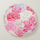 Almofada Redonda rosas rosa e brancas sem costura. Texto das flores